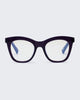 Harlot's Bed is a positive and playful statement frame. The oversize styling in a lustrous dark purple is an easy wear, with it's flexible material providing comfort and good feels.
