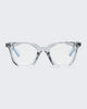 As if you have rinsed it with colour remover, best-selling unisex style Grime in Banishment goes back to the bones of it in this crystal clear finish. All frames are fitted with our 30% blue light filter and are available in a range of reading magnifications.