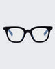 Perfectly understated but never boring, The Snatcher in Black Tie is a lightweight, squared-off frame with a slight cat eye peak. In Sharpie-esque black marker plastic with anti-blue light screen lens coating across all magnifications.
