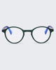 Bookishly cool round frames with smaller eye-size in royal emerald and navy tones.