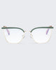 Metal cat-eye frame BE A WOLF features with spring hinge, adjustable nose pads and double thickness brow with green enamel finish.