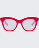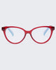 Best-selling cat-eye frame in rich crystal cherry. -